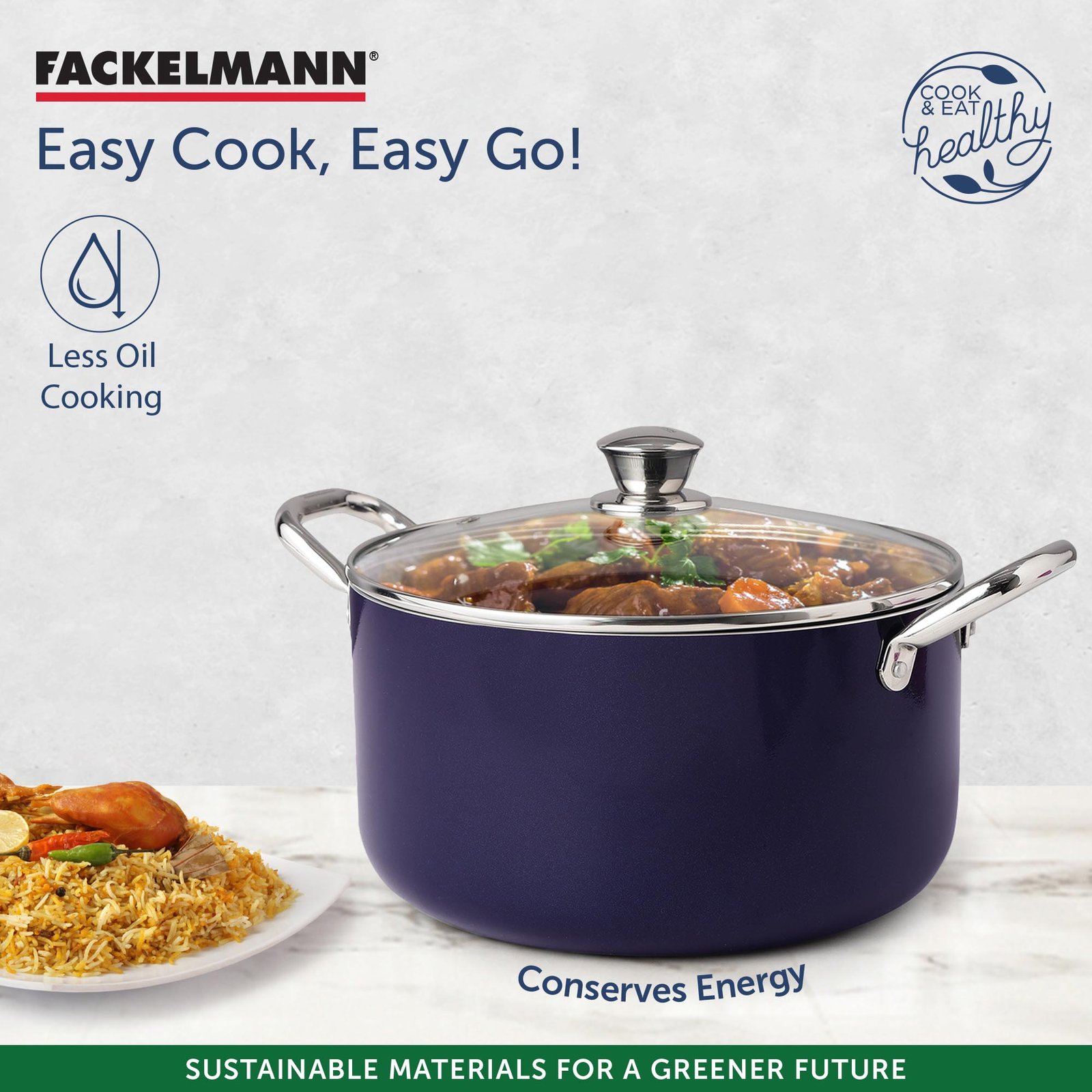 - VERSATILE COOKING: The Fackelmann Ceramik Kadai with Glass Lid is versatile for cooking Indian recipes like lasagna, chicken and rice, macaroni and cheese, enchiladas, baked vegetable, etc